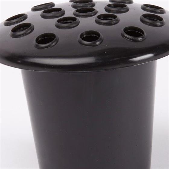 Typical UsesHardwearing black plastic grave vase used for decorating graves and headstones.