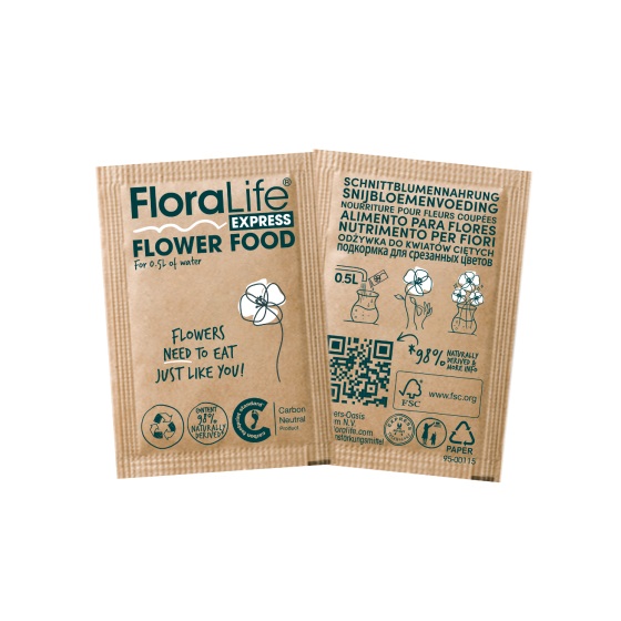 SustainabilityAs part of the FloraLife 2025 sustainability plan, Smithers Oasis are committed to improving the packaging of the products. Over the coming years, they aim to remove millions of pieces of plastic from the industry. Hence their decision to offer the industry a recyclable paper range of flower food. Working with Carbon Footprint Ltd. Oasis have made the packets carbon neutral, this means the net carbon emissions of the packets is zero.