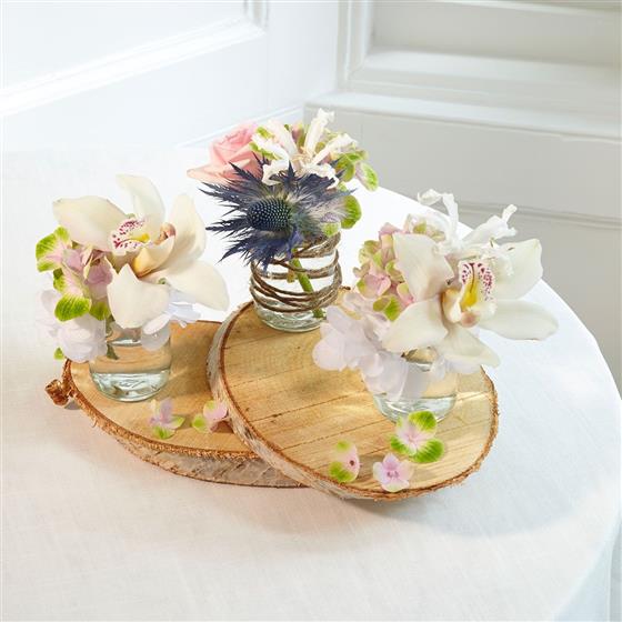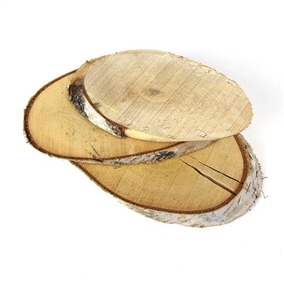 Typical UsesHuge range of uses including wedding displays, Christmas crafts and rustic signs. Please note that each slice of natural wood is unique, and features natural imperfections, so may look different to the wood slice pictured; this may include different textures, thickness and coverings of bark, different colouring, and natural knots and cracks. Please note sizes stated are a guide only and all slices will vary in size.