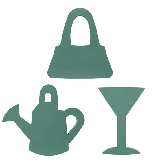 - Cocktail Glass 41cm x 59cm; Handbag 54cm x 59cm; Key 42cm x 89cm; Pipe 43cm x 89cm; Smartphone 44cm x 82cm; Teapot 37cm x 59cm; Watering Can 50cm x 59cm.