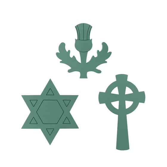 - 5 Point Star 41cm x 44cm; Big X 32cm x 44cm; Celtic Cross 29cm x 47cm; Fleur De Lys 38cm x 44cm; Northern Star 29cm x 44cm; Shield 39cm x 44cm; Star of David 38cm x 44cm; Thistle 43cm x 44cm; Angel Wings 30.5cm x 29cm.