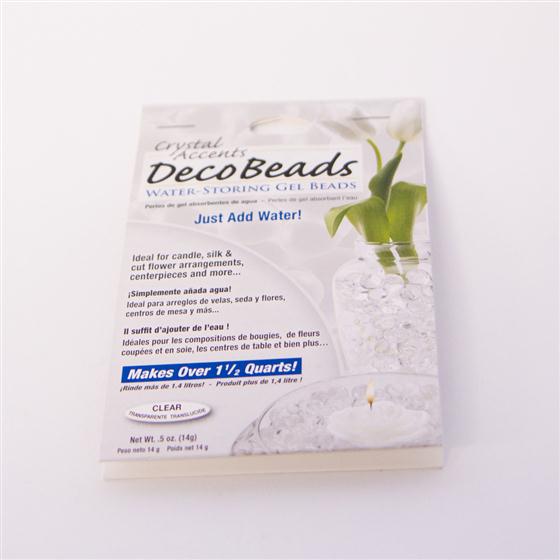 Typical UsesWater-absorbing beads and and crystals that make a unique feature in clear vases. Simply add the right amount of water and watch the beads expand. Water absorbing spherical clear beads are perfect for use in glassware and containers. Simply add the correct amount of water and watch the clear beads grow before your eyes. Create glimmering floral or candle arrangements with these water-storing gel beads, ideal for both silk and fresh flowers.