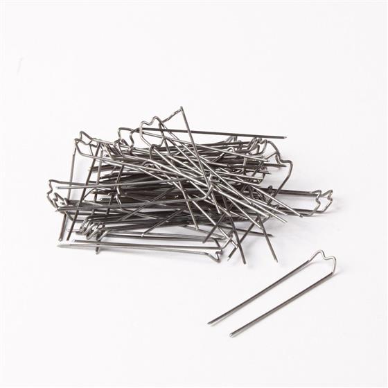 Typical UsesUsed to pin and secure materials into floral designs whilst hiding in the finished design. Straight mossing pins with their flat tops will sit flush against surfaces, while bent mossing pins allow voluminous material to be secured without flattening it too much. Suitable for materials including moss, leaves, bark, ribbon and Styropor®.